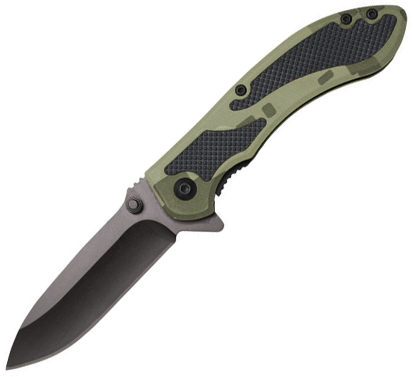 3 3/4″ closed. 2 5/8″ assisted opening black finish stainless blade. Green digital camouflage aluminum handles. Front handle has black checkered rubber inserts. Black finish stainless pocket clip.