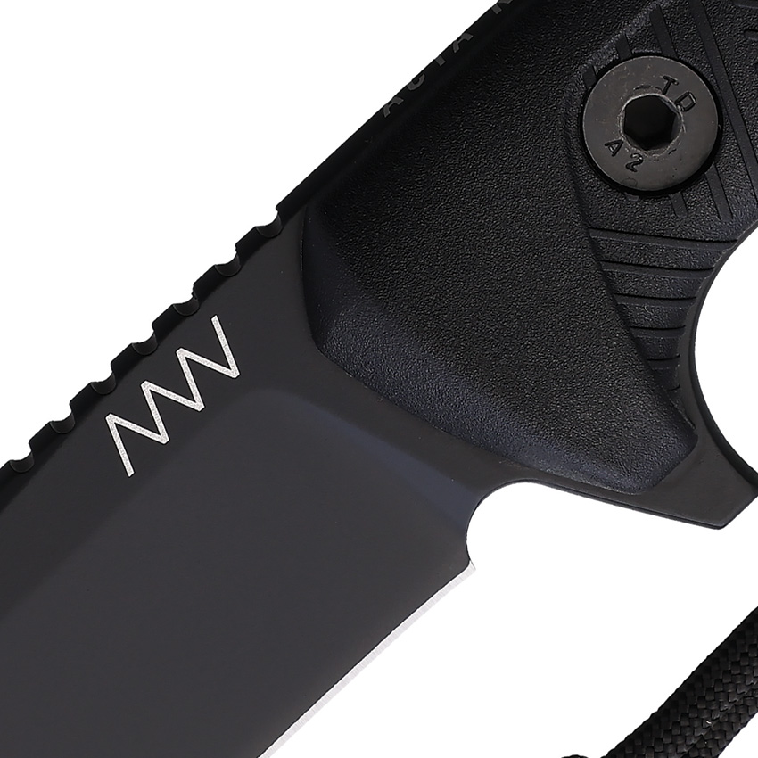 10.38″ (26.37cm) overall. 5.13″ (13.03cm) black Cerakote finish Sleipner tool steel blade. Black textured GRNPU handle. Full, extended tang. Lanyard hole. Black leather belt sheath. Boxed.