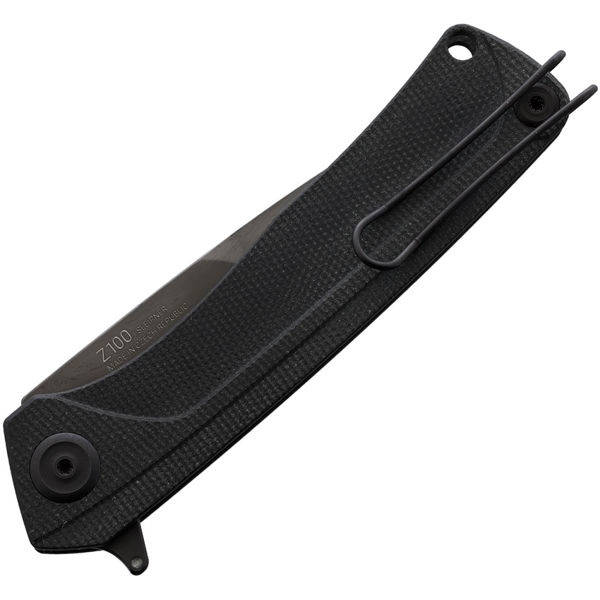 4.75″ (12.07cm) closed. 3.75″ (9.53cm) black DLC coated Sleipner tool steel blade. Black G10 handle. Extended tang. Lanyard hole. Pocket clip. Boxed.