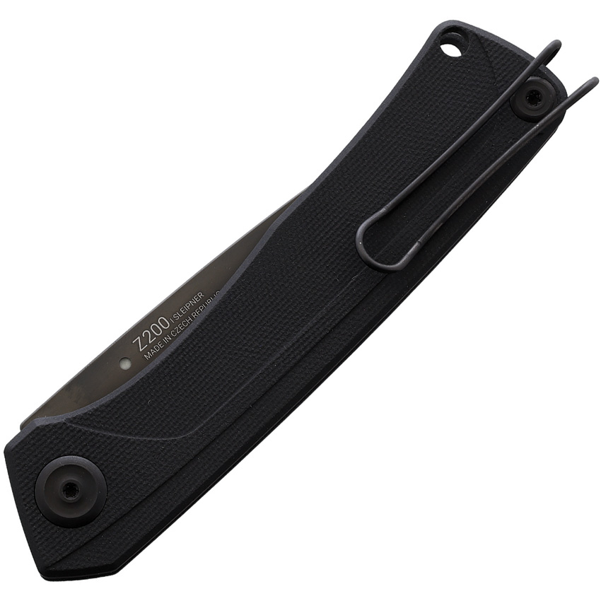 4.88″ (12.4cm) closed. 3.75″ (9.53cm) black DLC coated Sleipner tool steel blade. Black G10 handle. Lanyard hole. Pocket clip. Boxed.