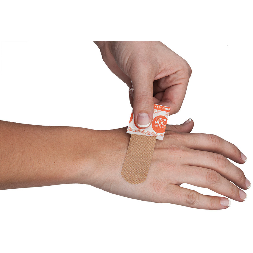 Flexible Fabric Portable Packs. 2 packs of 15. (30) 1″ x 3″. Comfortable fabric that fits you better and moves with you. Non-stick pad that won’t stick to your wound for gentle removal. Long lasting adhesive that keeps the bandage on long. Easy one-handed application. Portable packs. Less mess. Less contamination risk. Latex free. Sterile. Easy as 1,2,3! Grip-Pull-Stick! Boxed.