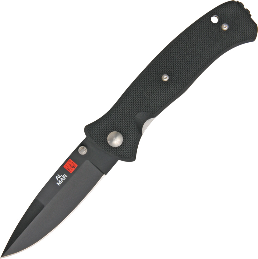 Mini SERE 2000 Linerlock. 4″ closed. Black matte finish false edge VG-10 stainless blade. Textured G10 handle. Thumb stud. Lanyard hole. Pocket clip.
