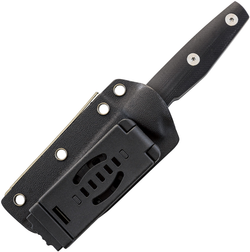6.88″ (17.48cm) overall. 3″ (7.62cm) satin finish D2 tool steel blade. Black G10 handle. Full tang. Black Kydex belt sheath. Boxed.
