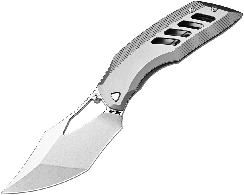 4.38″ (11.13cm) closed. 3.63″ (9.22cm) stonewash finish S35VN stainless modified tanto blade. Gray titanium handle. Thumb stud. Thumb pull. Pocket clip. Extended tang. Black nylon zippered storage case. Boxed.