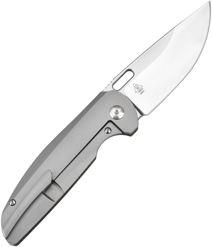 4.38″ (11.13cm) closed. 3.38″ (8.59cm) satin finish S90V steel drop point blade. OD green micarta handle with gray titanium back handle. Thumb pull. Pocket clip. Black nylon zippered storage case. Boxed.
