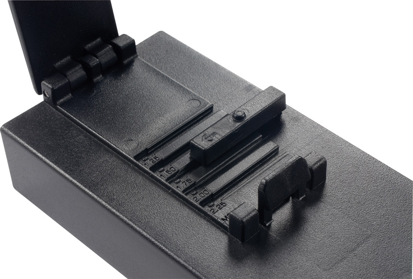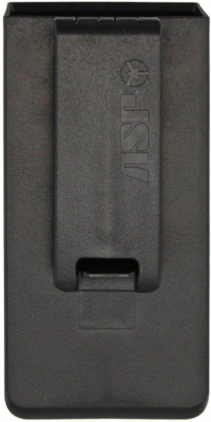 Case easily clips to a service belt and holds two of the Tri-Fold disposable restraints. Molded black polymer body with two divided compartments and button drain hole. Fixed belt loop with slide adjustment, slide lock. MOLLE compatible.