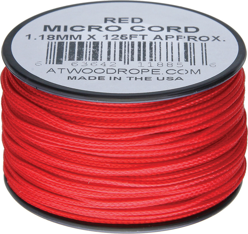 1.18mm diameter. Good for jewelry makers, backpacks, emergency kits, bracelets, lanyards, key chains, and much more. Comes on a small reusable plastic spool. Color: Red. 125 ft. Nylon construction. Bulk packed.