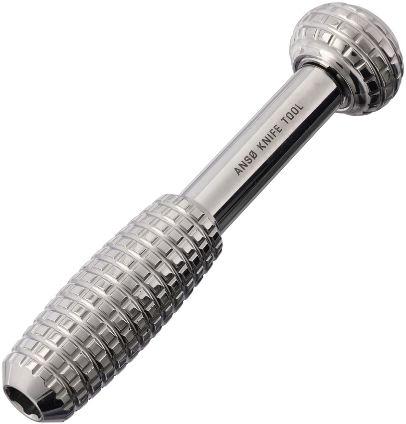 3.75″ overall. Collaboration between AuCon and renowned Danish designer Jens Anso. Double bearing system. Grenade pattern grip. Magnetic bit holder-holds standard 1/4″ bits (not included). Micro bits can be used with an adapter (not included). Serialized. Comes in hard plastic case. Titanium construction. Hand polished finish.