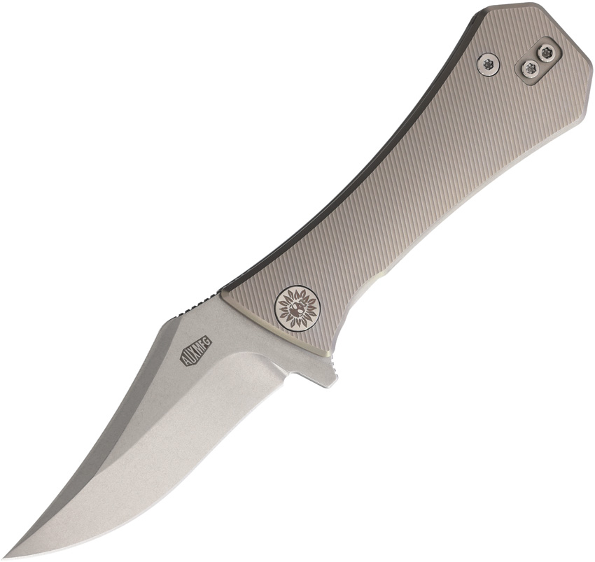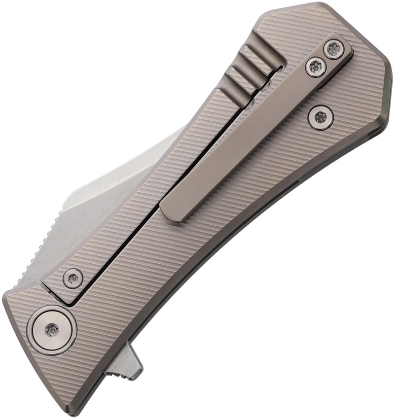 3.75″ (9.53cm) closed. 2.75″ (6.99cm) stonewash finish Bohler M390 stainless clip point blade. Gray textured titanium handle. Extended tang. Pocket clip. Boxed.