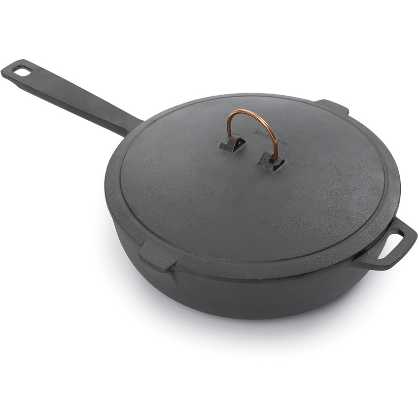 Weight: 5.5lb. Vintage white enamel lining. Cast iron exterior. Ergonomic handle. Copper plated ring. 10″ diameter. 6.5″ handle. 2″ depth. Boxed.