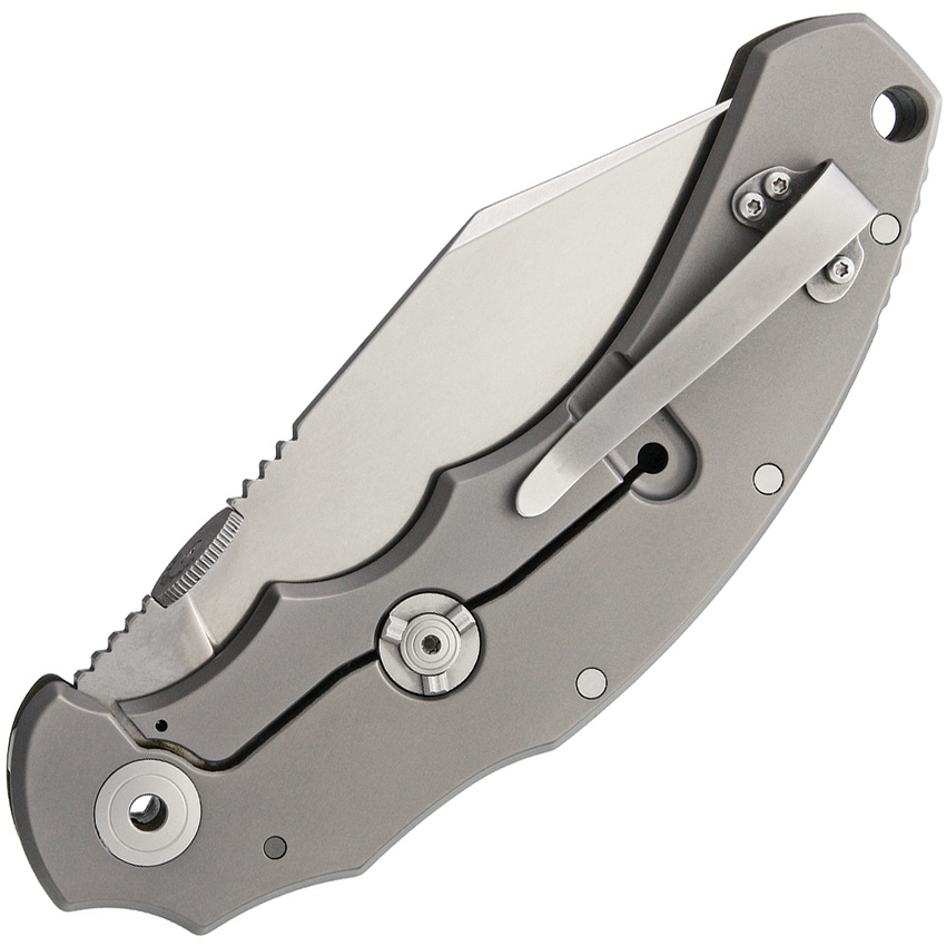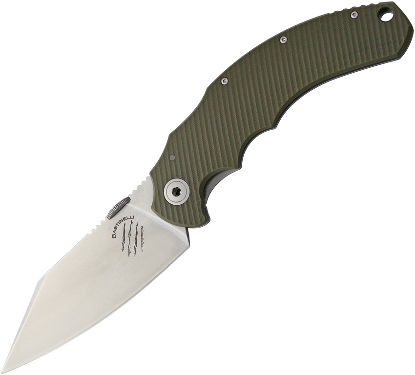 6″ closed. 4 3/4″ stonewash finish D2 tool steel wharncliff blade with thumb disk. Features RotoBlock system to lock blade in the open position. Green 3D textured G-10 front handle. Titanium back handle. Lanyard hole. Stonewash finish stainless pocket clip. Made in Italy by Lion Steel.