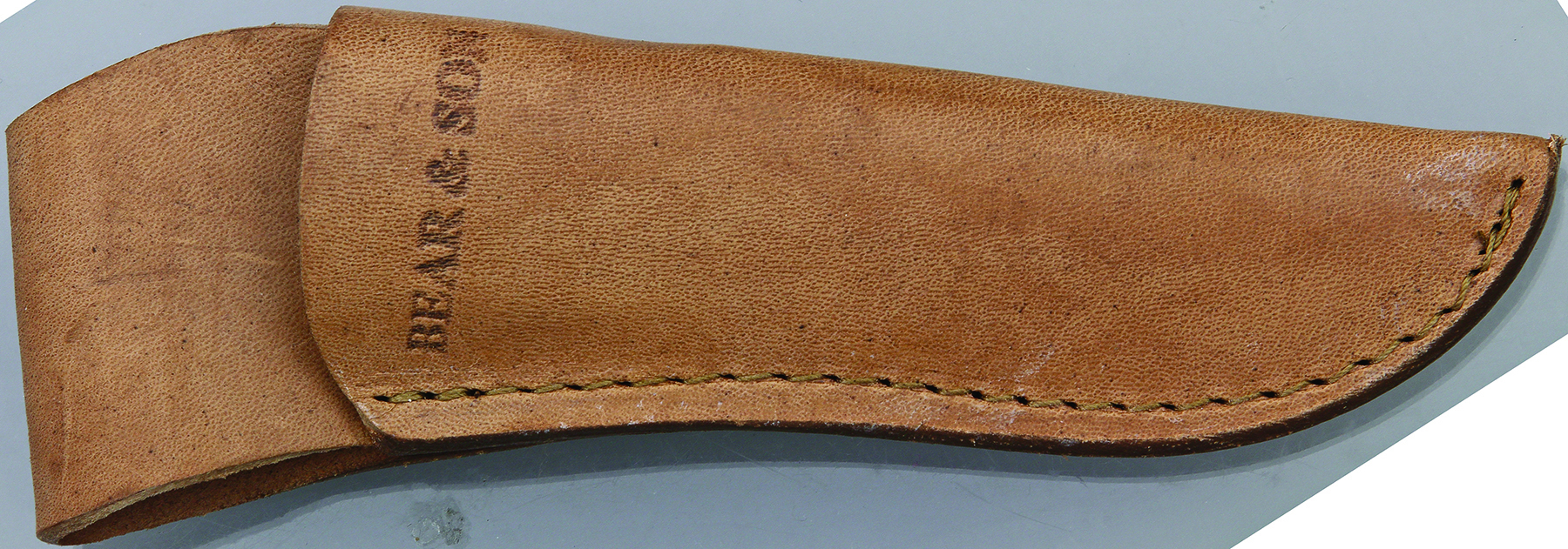 7″ overall. 2 7/8″ high carbon stainless drop point blade. Full tang. Genuine India stag bone handles with nickel silver bolster. Brown leather belt sheath.