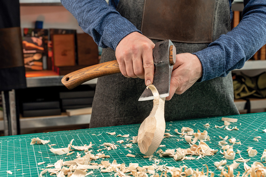 11.88″ overall. 5.5″ forged 1066 carbon steel axe head with 3″ cutting edge. Lanyard hole. Ash wood handle. Brown leather belt sheath. Boxed.