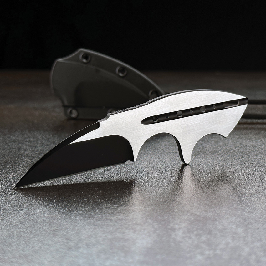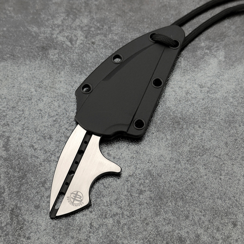 4.75″ (12.07cm) overall. 2″ (5.08cm) two-tone finish AUS-10A stainless Wharncliffe blade. Stainless handle. Black FRN neck sheath. Boxed.
