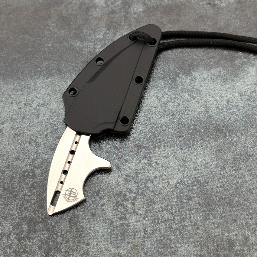 4.75″ (12.07cm) overall. 2″ (5.08cm) satin finish AUS-10A stainless Wharncliffe blade. Stainless handle. Black FRN neck sheath. Boxed.