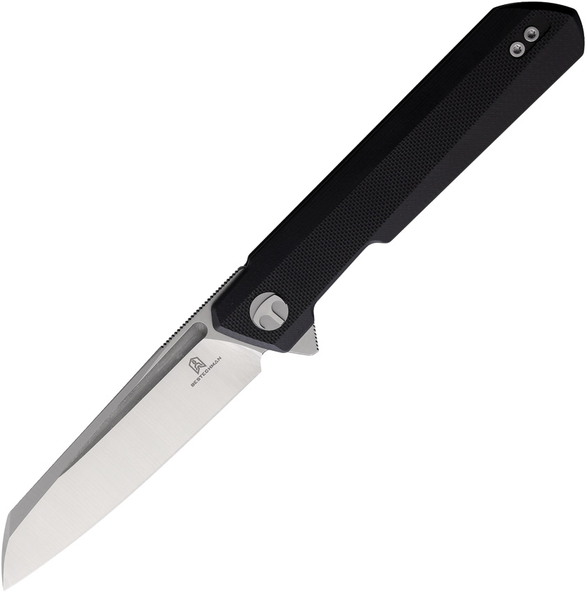 Bestech Knives Bestechman Dundee Linerlock, a fixed blade knife designed for precision and durability. With its sleek design and robust build, this knife is a reliable tool for any outdoor enthusiast or collector. Its black G10 handle and sheepsfoot blade style make it a standout piece in any collection.