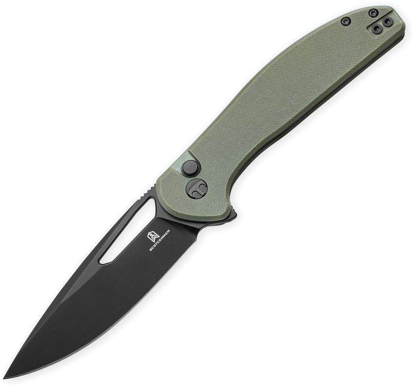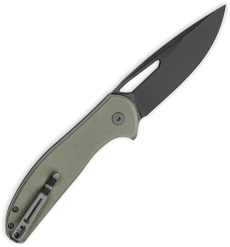 4.5″ (11.43cm) closed. 3.38″ (8.59cm) black PVD coated D2 tool steel drop point blade. OD green G10 handle. Extended tang. Pocket clip. Thumb pull. Boxed.