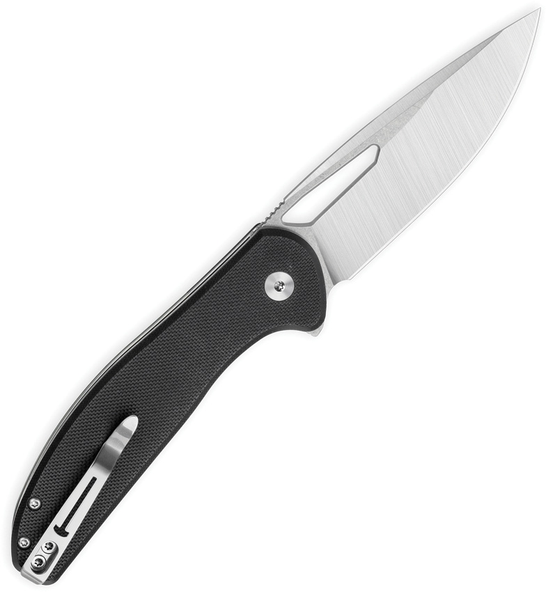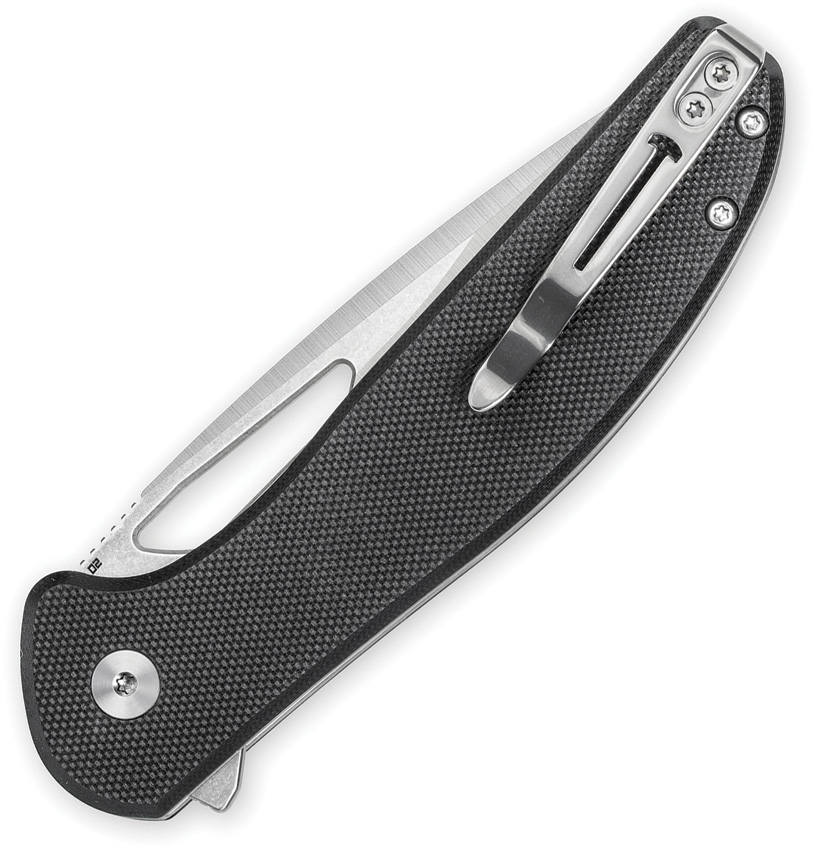 4.5″ (11.43cm) closed. 3.38″ (8.59cm) stonewash and satin finish D2 tool steel drop point blade. Black G10 handle. Extended tang. Pocket clip. Thumb pull. Boxed.