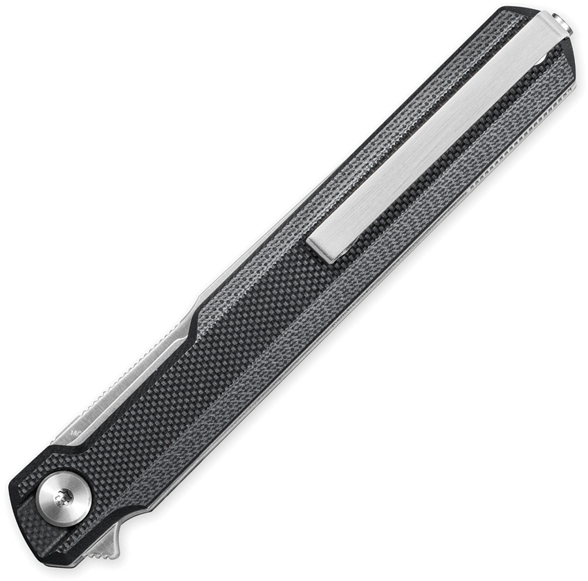 4.25″ (10.8cm) closed. 3.38″ (8.59cm) satin finish 14C28N Sandvik stainless blade. Black G10 handle. Extended tang. Pocket clip. Boxed.