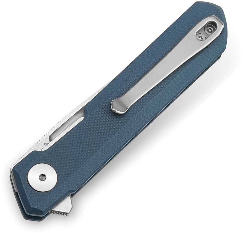 4″” (10.16cm) closed. 3″” (7.62cm) stonewash and satin finish D2 tool steel blade. Slate blue G10 handle. Extended tang. Pocket clip. Boxed.