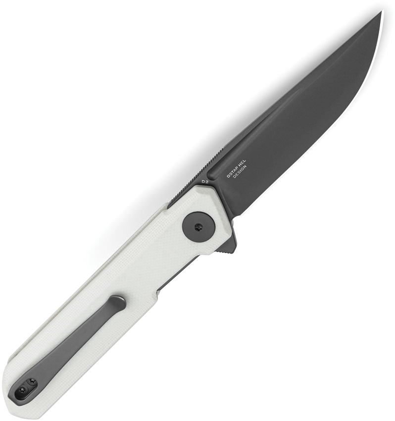 4″” (10.16cm) closed. 3″” (7.62cm) gray PVD coated D2 tool steel blade. White G10 handle. Extended tang. Pocket clip. Boxed.