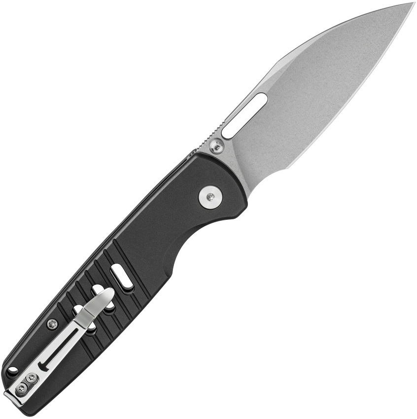 4.13″” (10.49cm) closed. 3.13″” (7.95cm) stonewash finish D2 tool steel blade. Black anodized aluminum handle. Thumb stud. Thumb pull. Lanyard hole. Pocket clip.