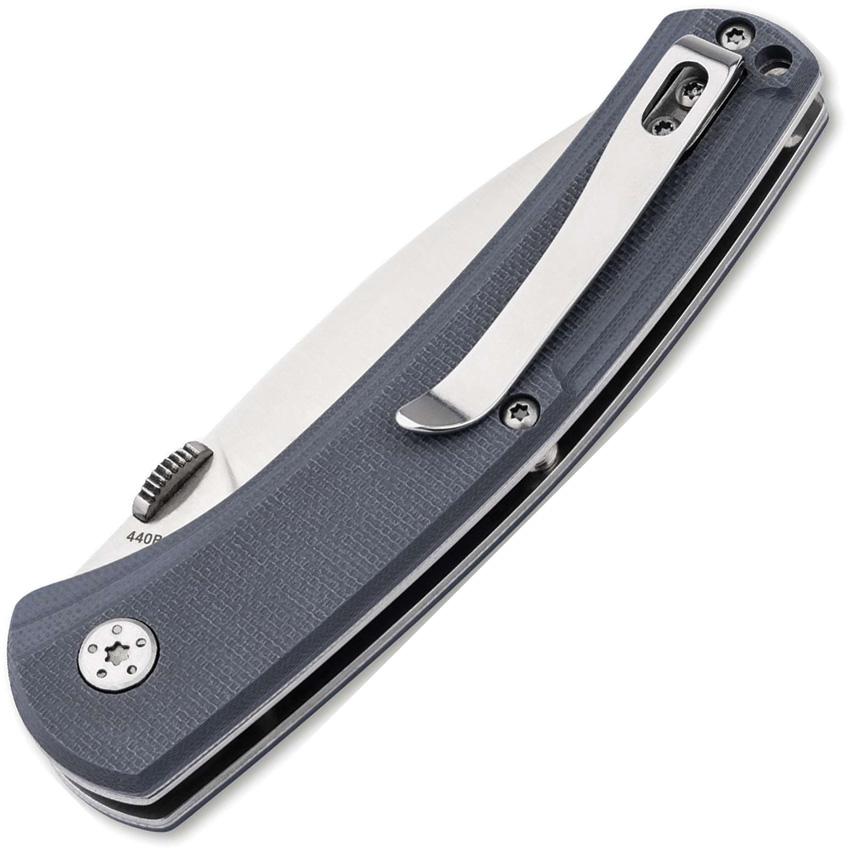 4.13″ (10.49cm) closed. 3″ (7.62cm) satin finish 440 stainless blade. Slate blue G10 handle. Thumb disk. Lanyard hole. Pocket clip. Boxed.