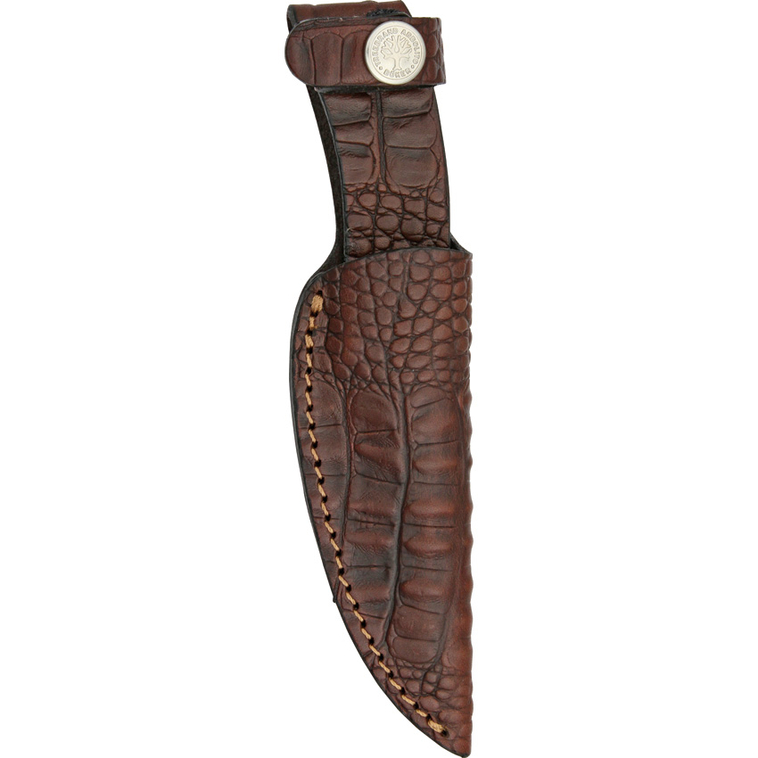 Pine Creek Fixed Blade. 7.5″ overall. 3.63″ satin finish T6MoV stainless blade. Guayacan Ebony wood handle. Full tang. Lanyard hole. Brown leather belt sheath. Designed by Jerry Lairson. Boxed.