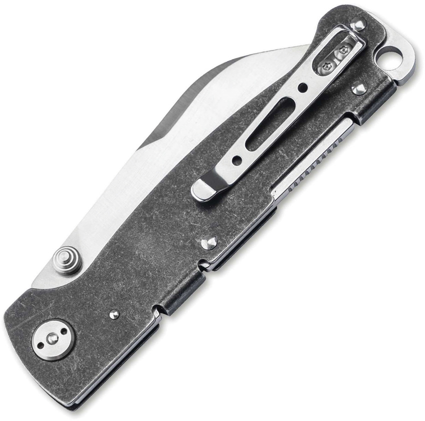 3.75″ (9.53cm) closed. 2.88″ (7.32cm) satin finish D2 tool steel sheepsfoot blade. Black stonewash finish stainless handle. Thumb stud. Lanyard hole. Pocket clip. Boxed.