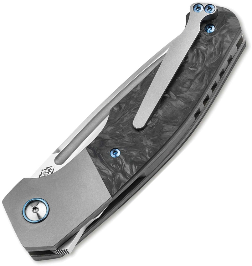 3.38″ (8.59cm) bead blast finish MagnaCut steel blade. Gray titanium handle with marble carbon fiber inlay. Pocket clip. Strictly limited edition of 500 pieces worldwide Boxed.