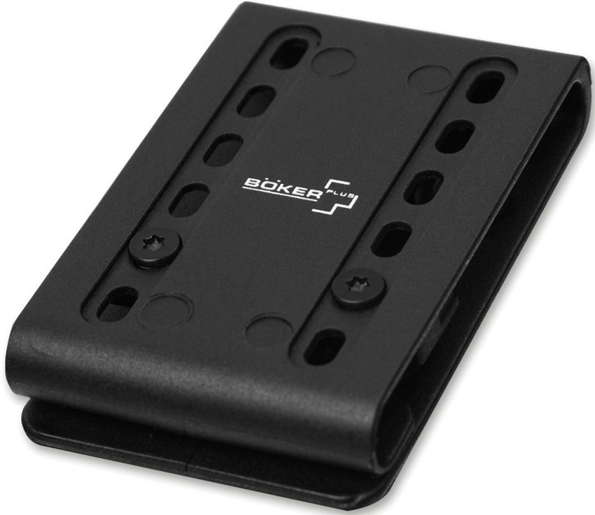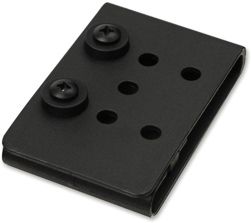 Compatible with the small Tek-Lok hole pattern, this clip mounts easily to Kydex sheaths and slides securely over belts up to 50 mm wide. Mounting screws are included. Kydex construction. Color: Black. Bagged.