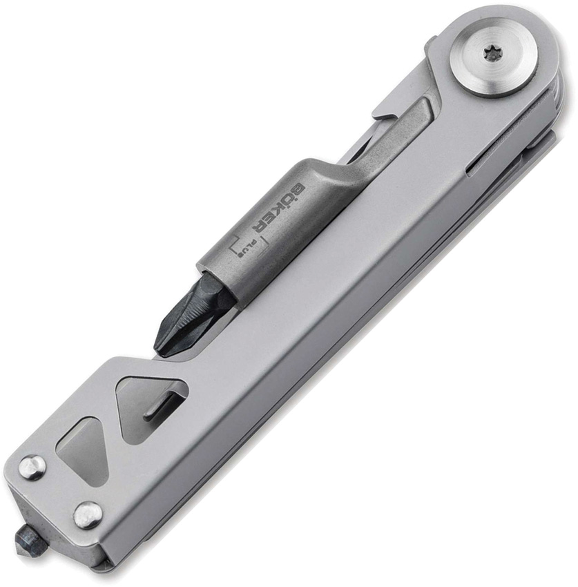 7.38″ overall. Stainless handles. Tools include: Large blade l Scissors l Flat head screwdriver l Glass breaker l Awl l Phillips screwdriver. Universal bit holder. Boxed.