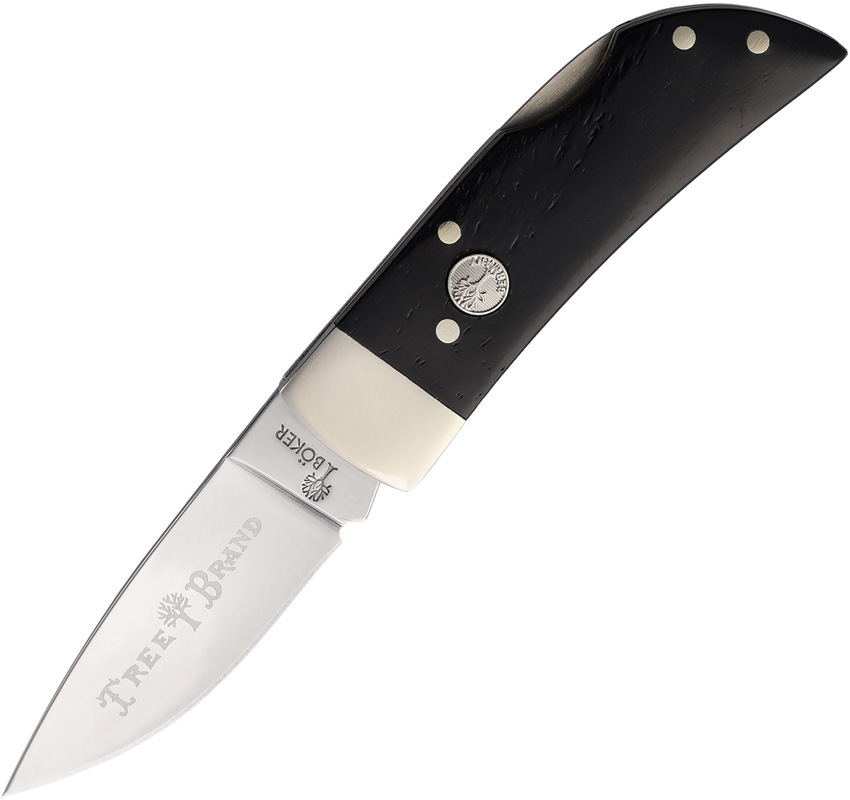 2.5″ (6.35cm) closed. 1.5″ (3.81cm) mirror finish stainless blade. Black wood handle. Nickel silver bolster(s). Inlay shield. Boxed.
