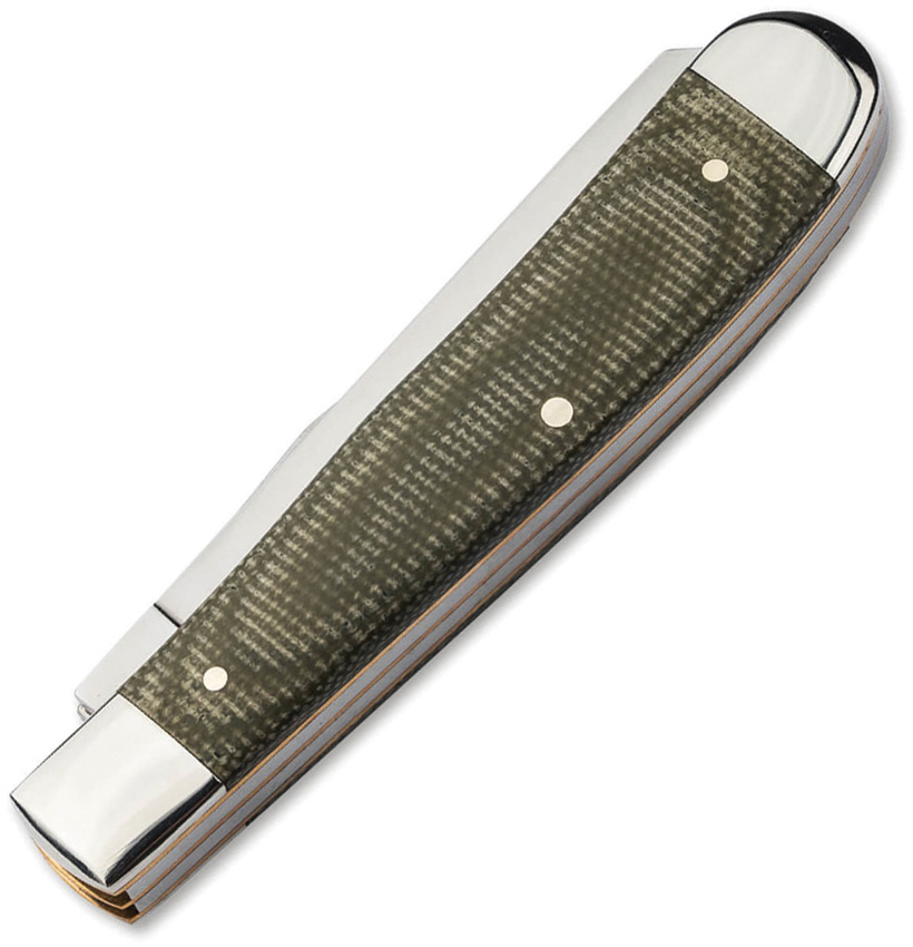 4.13″ (10.49cm) closed. Satin finish D2 tool steel clip and spey blades. Green canvas micarta handle. Nickel silver bolster(s). Inlay shield. Boxed.