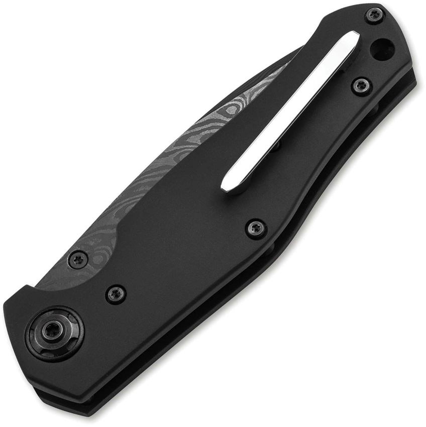 4.13″ (10.49cm) closed. 3.13″ (7.95cm) PVD coated Damascus steel drop point blade. Black aluminum handle. Thumb stud. Lanyard hole. Pocket clip. Blade hand-forged by Chad Nichols in the Tread” pattern. Strictly limited to 300 pieces worldwide. Comes in display box. Boxed.