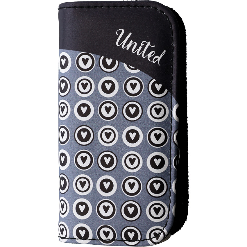 3.5″ (8.89cm) closed. 2.5″ (6.35cm) mirror finish 8Cr13MoV stainless blade. Aluminum handle. Blade etching. Thumb stud. Black, gray, and white heart artwork on handle and carry case. Synthetic zippered storage case. Boxed.