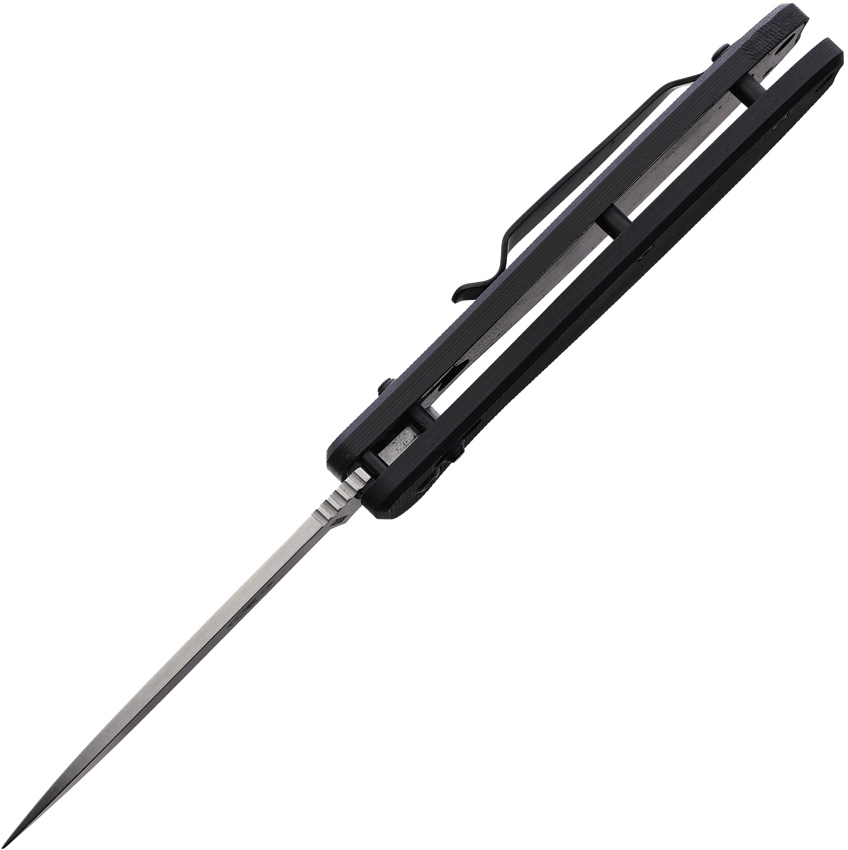 Automatic opening. 4″ (10.16cm) closed. 3″ (7.62cm) stonewash finish 14C28N Sandvik stainless blade. Black G10 handle. Pocket clip. Lanyard hole. Boxed.