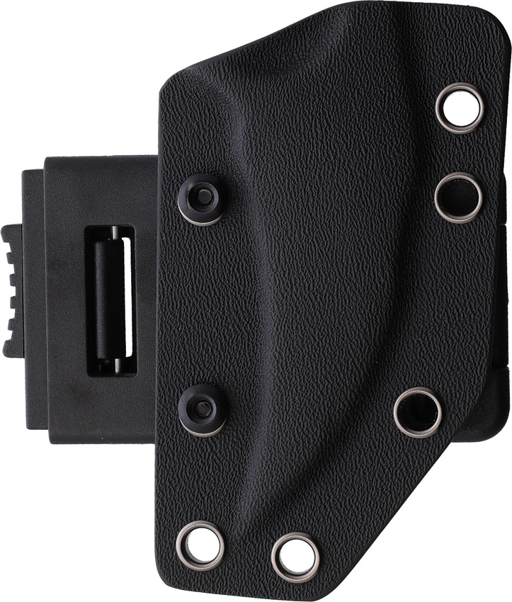 5.13″ (13.03cm) overall. 2.75″ (6.99cm) D2 tool steel recurve blade. Blackout finish. Tek-Lok mounting system. Double finger hole handle design. Black Kydex belt sheath. Bagged.
