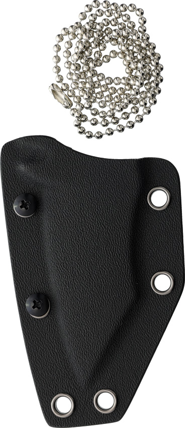 5.25″ (13.34cm) overall. 3″ (7.62cm) acid washed finish D2 tool steel modified drop point blade. One-piece construction. Lanyard hole. Finger ring. TekLok and ball chain lanyard. Black Kydex belt sheath. Bagged.