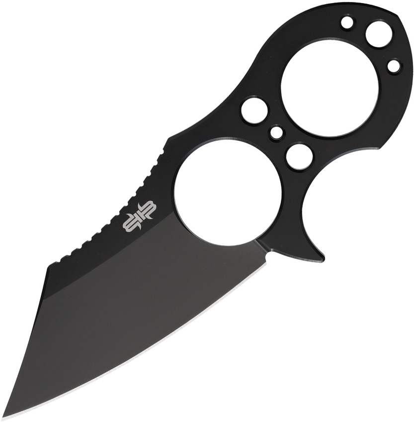 5.25″ (13.34cm) overall. 3″ (7.62cm) black coated D2 tool steel modified drop point blade. One-piece construction. Lanyard hole. Finger ring. TekLok and ball chain lanyard. Black Kydex belt sheath. Bagged.