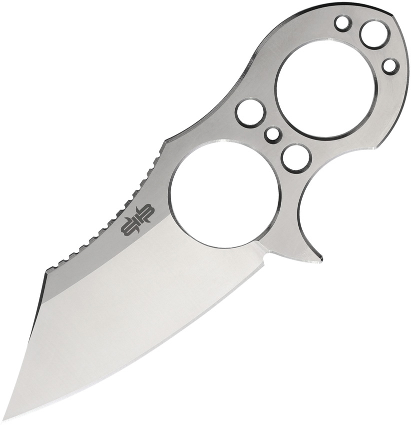 5.25″ (13.34cm) overall. 3″ (7.62cm) satin finish D2 tool steel modified drop point blade. Finger ring. Lanyard hole. One-piece construction. TekLok and ball chain lanyard. Black Kydex belt sheath. Bagged.