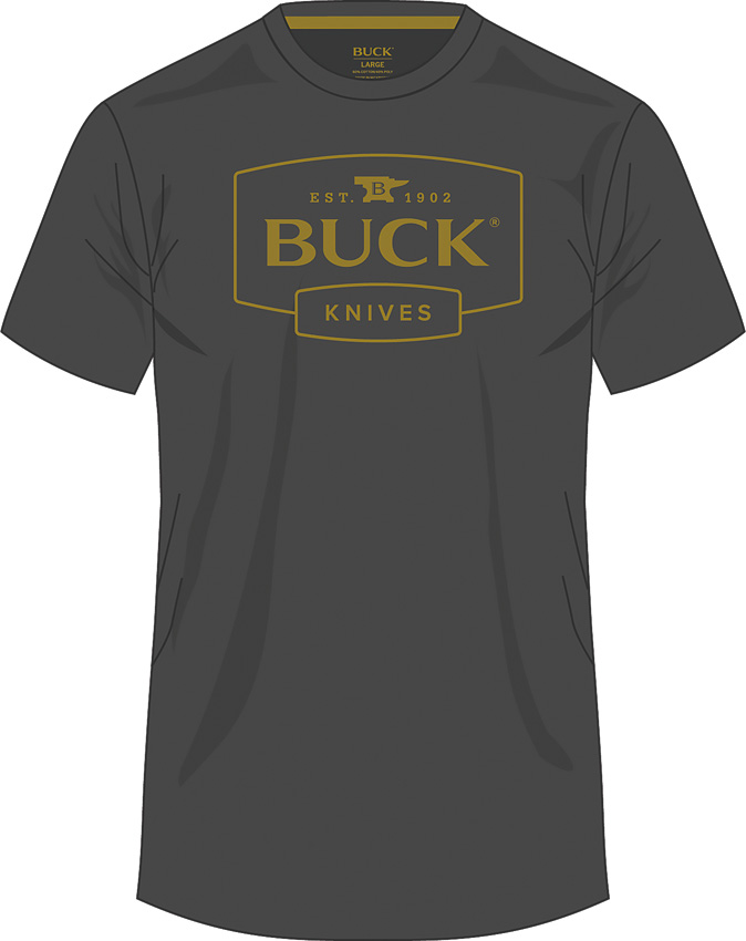 Buck classic logo on back and front left. Color: Charcoal. Size: X-Large. Bulk packed.