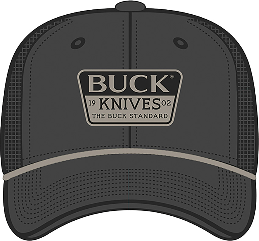 Embroidered patch. Mesh back. Snap closure. Color: Charcoal. Bulk packed.
