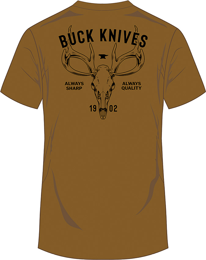 Buck skull logo on back and front left. Color: Coyote Brown. Size: Large. Bulk packed.