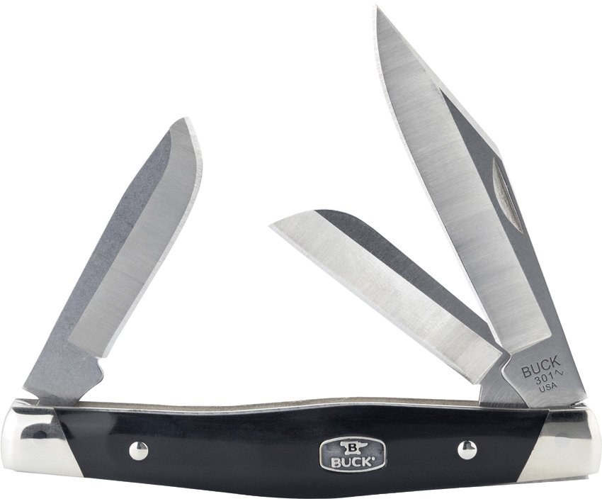 3.5″ (8.89cm) closed. Satin finish 420HC stainless clip, sheepsfoot, and spey blades. Nickel silver bolster(s). Inlay shield. Black Valox handles. Boxed.