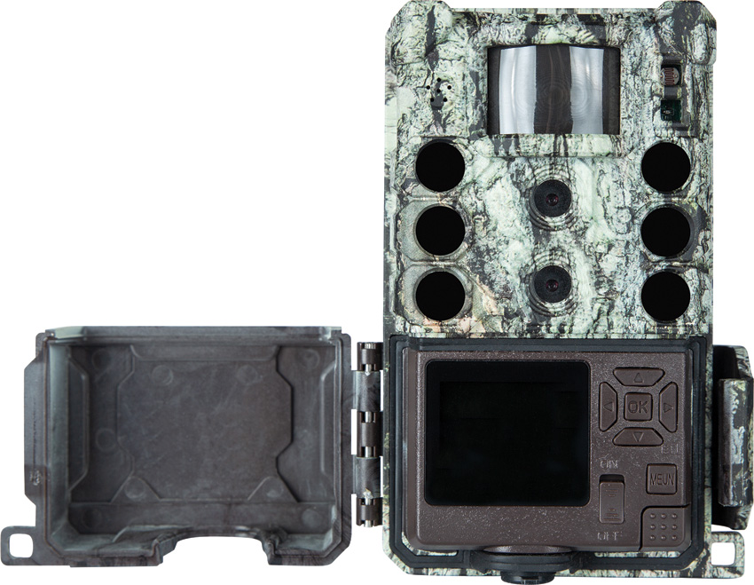 4K dual sensors. 4K 30FPS video. 1.5″ color view screen. No-Glow LED 120ft Night Range. 0.15 second trigger speed, 1 second recovery rate. Dynamic video. Three preset menus with advanced mode. Pro image tuning. Removable battery tray. SD card slot up to 512GB (not included). Up to 32MP images. Boxed with hanging tab.