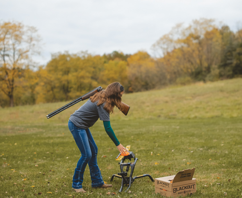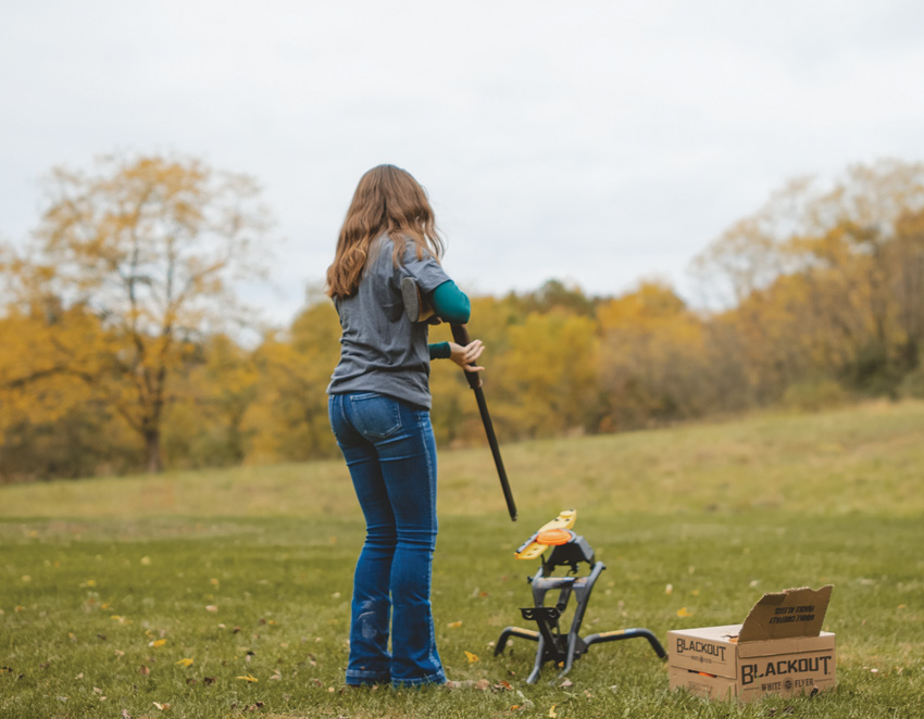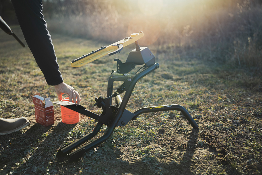 Safe, hands-free loading with foot pedal design that tensions the spring and throws the target in one easy press. Auto reset arm returns to the loading position after each firing. Folding legs allow for collapsing down for easy transport. Toolless angle adjustment. Can throw mini, midi, and standard clays as singles and doubles. Boxed.