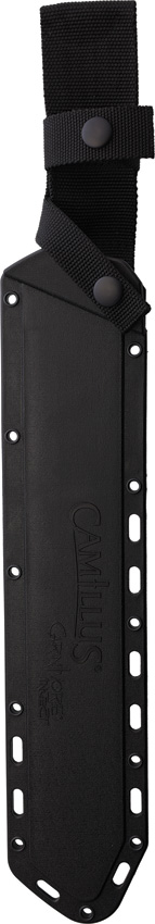 18″ (45.72cm) overall. 12″ (30.48cm) titanium coated sawback 420 stainless guthook blade. Black ABS handle. Full, extended tang. Lanyard hole. Black ABS belt sheath. Boxed.
