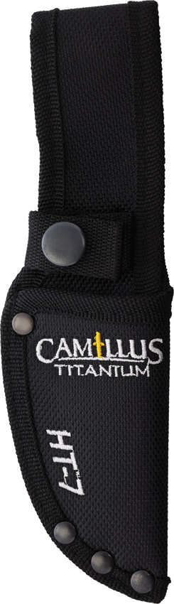 7″ (17.78cm) overall. 3″ (7.62cm) titanium coated stainless blade. Black micarta handle. Full tang. Lanyard hole. Black nylon belt sheath. Clam packed.