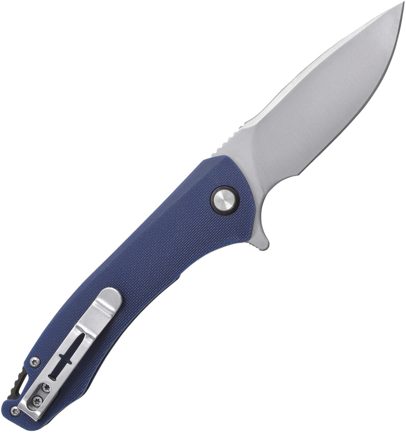 4.75″ (12.07cm) closed. 3.25″ (8.26cm) titanium coated 420 stainless drop point blade. Blue glass filled nylon handle. Extended tang. Lanyard hole. Pocket clip. Clam packed.